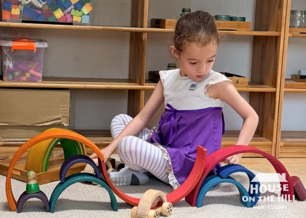 At House on the Hill Montessori Preschool, children experience an authentic three-hour Montessori work cycle with hands-on, screen-free materials, meaningful outdoor time, and a multicultural environment enriched by Mandarin immersion and Japanese language exposure.